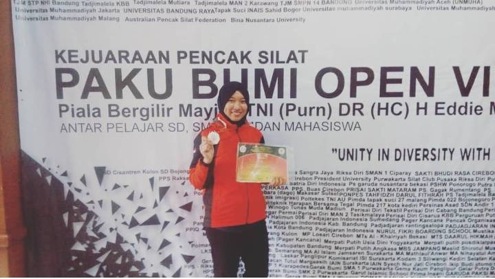 Syifa Azhari N- salah satu mahasiswa ASM Ariyanti dari jurusan Sekretari Public Relations mengikuti Kejuaraan Pencak Silat Paku Bumi Open VI Tahun 2019