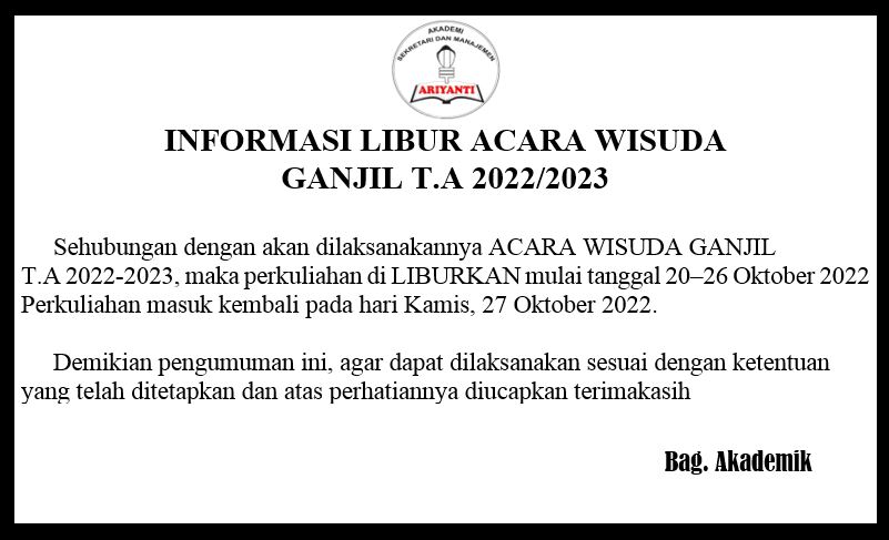 INFORMASI LIBUR ACARA WISUDA GANJIL T.A 2022/2023